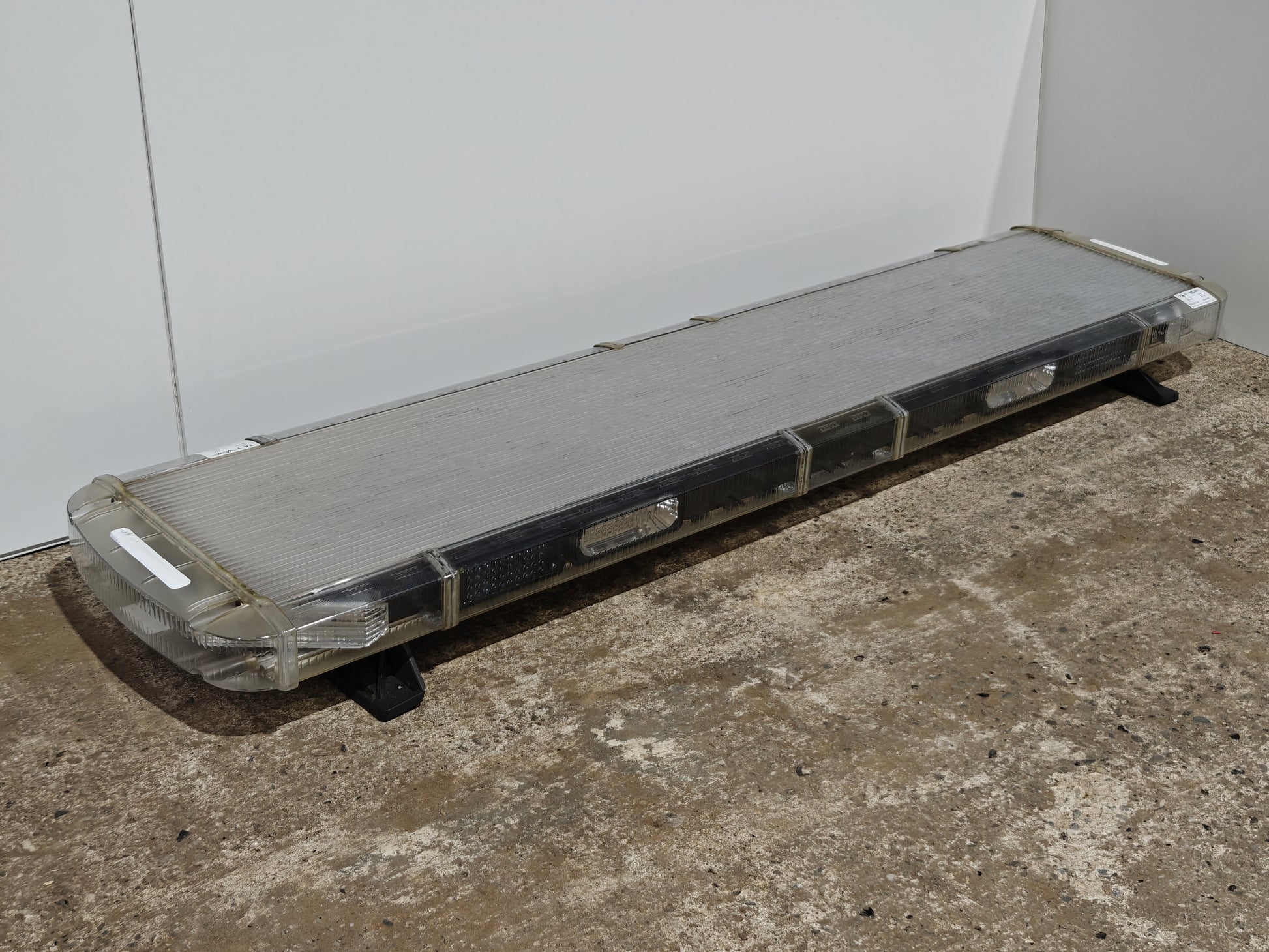 Sauber eingesetzte Whelen Liberty Lichtleiste in Bernstein, die Lichtleiste ist mit Eckeinheiten und Richtungseinheiten ausgestattet.