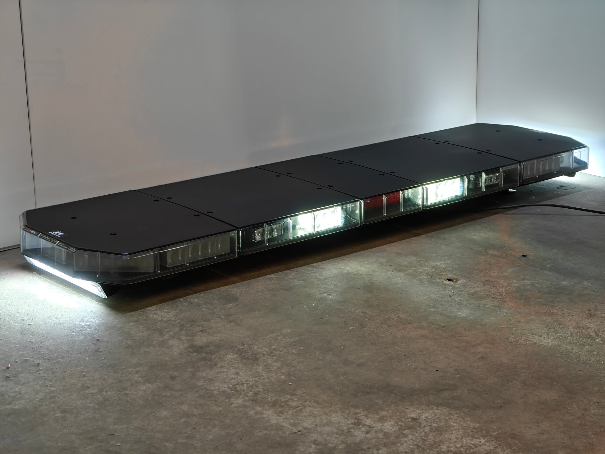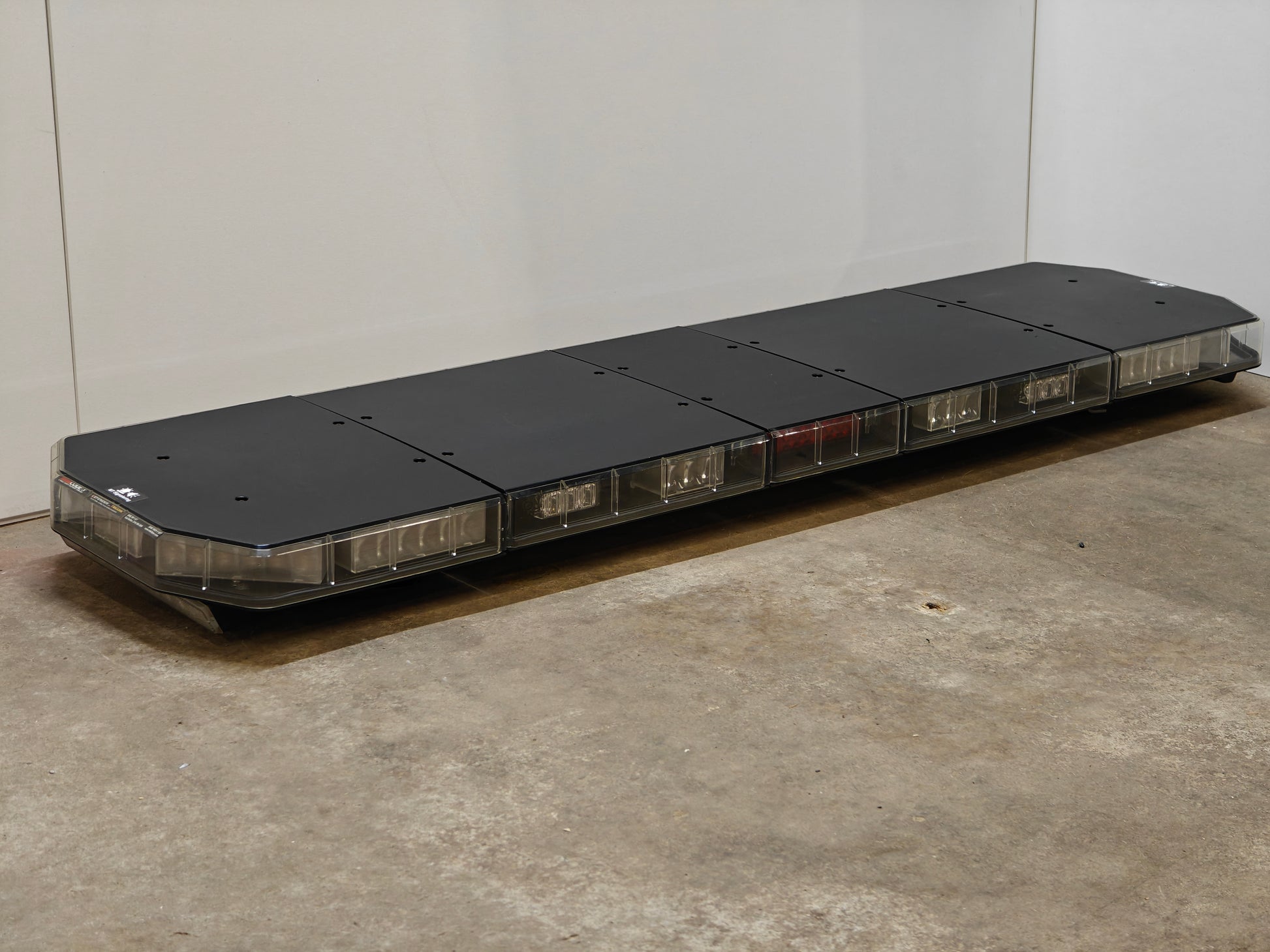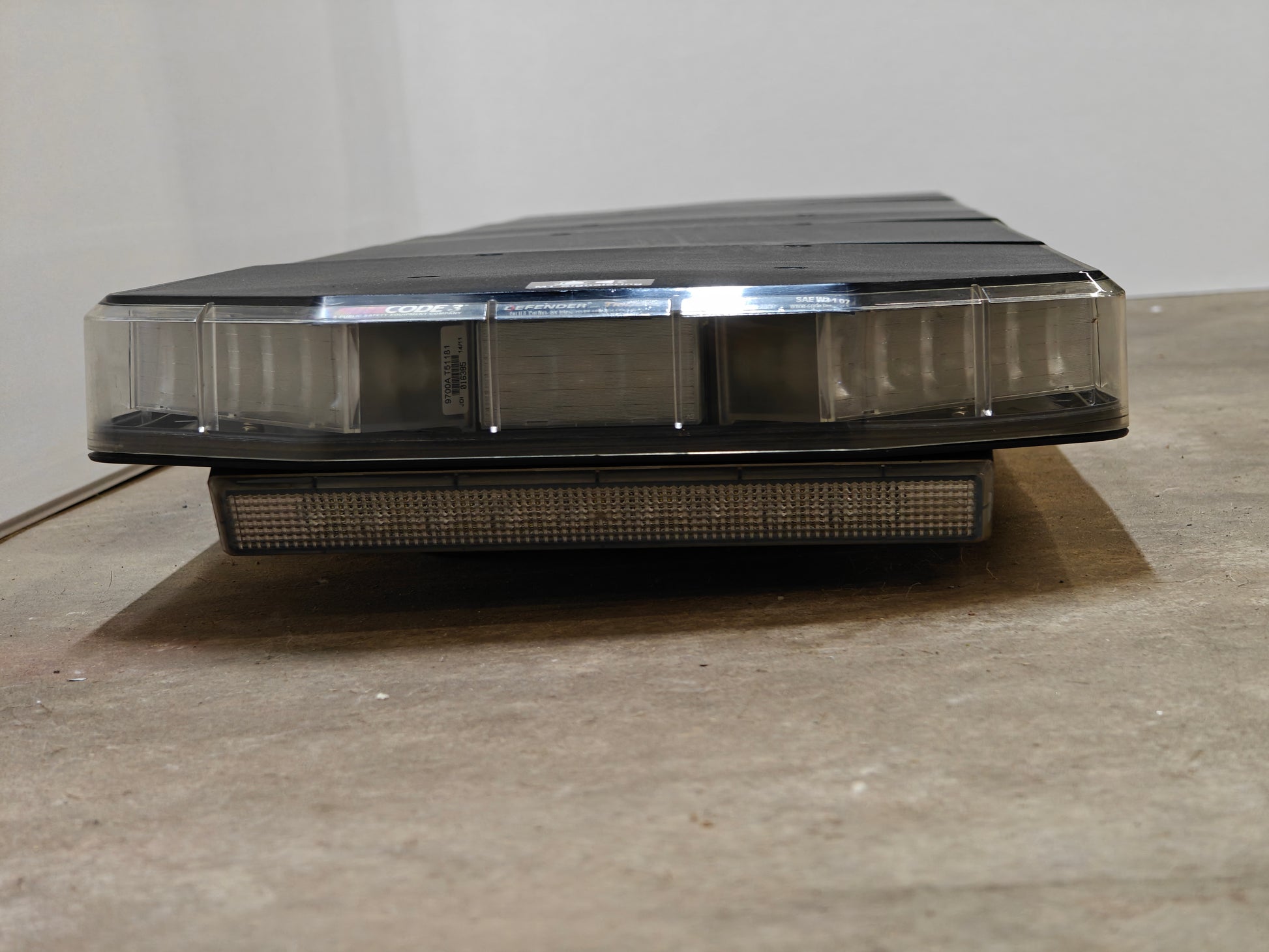 Nette LED flitsbalk van Code 3 voorzien van heldere transparante kappen met zwarte bovenzijde. Dit zorgt voor een extra felle lichtopbrengst en ook word vergeling van de lenzen door UV licht tegen gegaan.