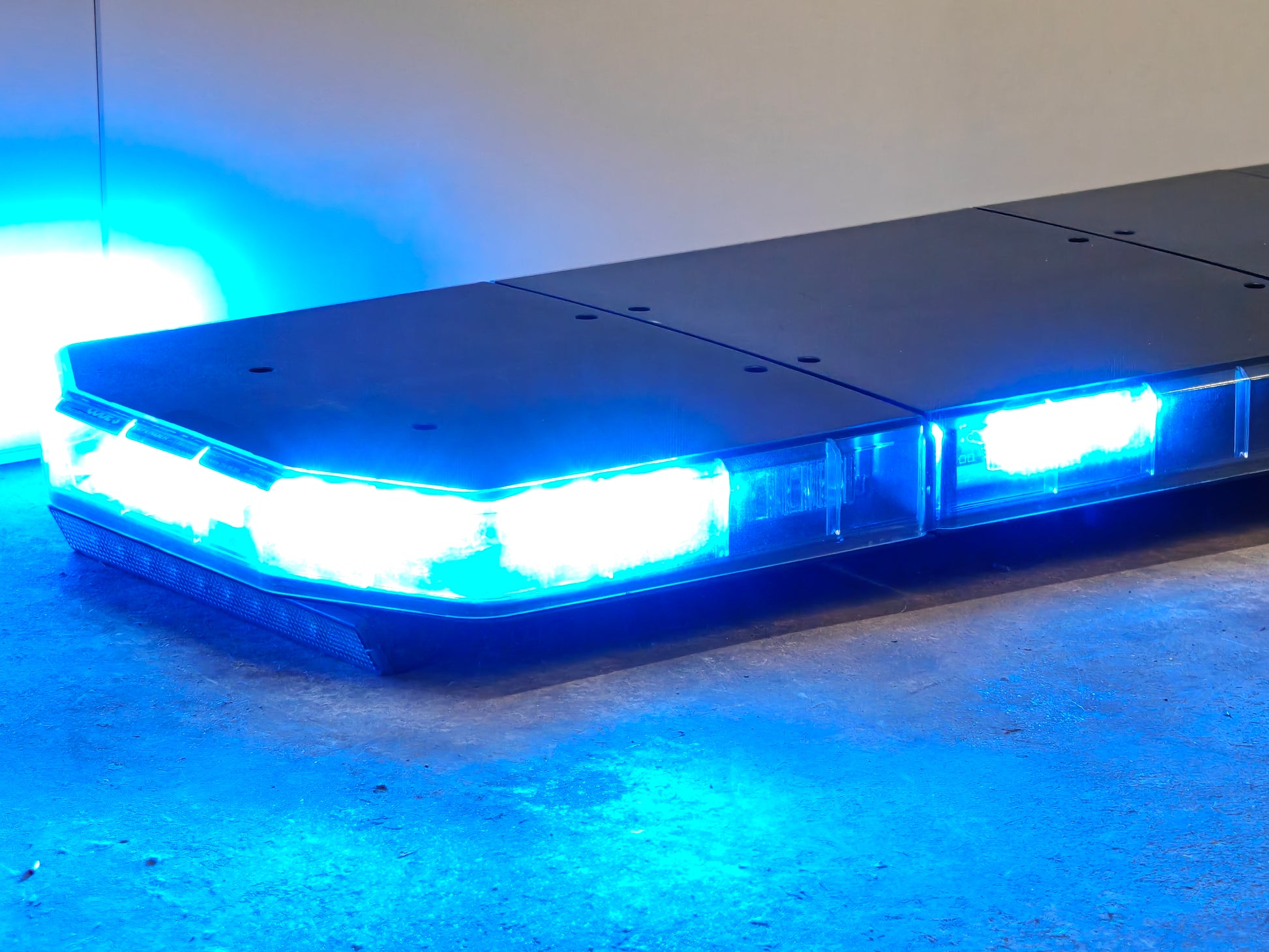 Nette LED flitsbalk van Code 3 voorzien van heldere transparante kappen met zwarte bovenzijde, Dit zorgt voor een extra felle lichtopbrengst. De lichtbalk is voorzien van dual colour led modules (amber/blauw).