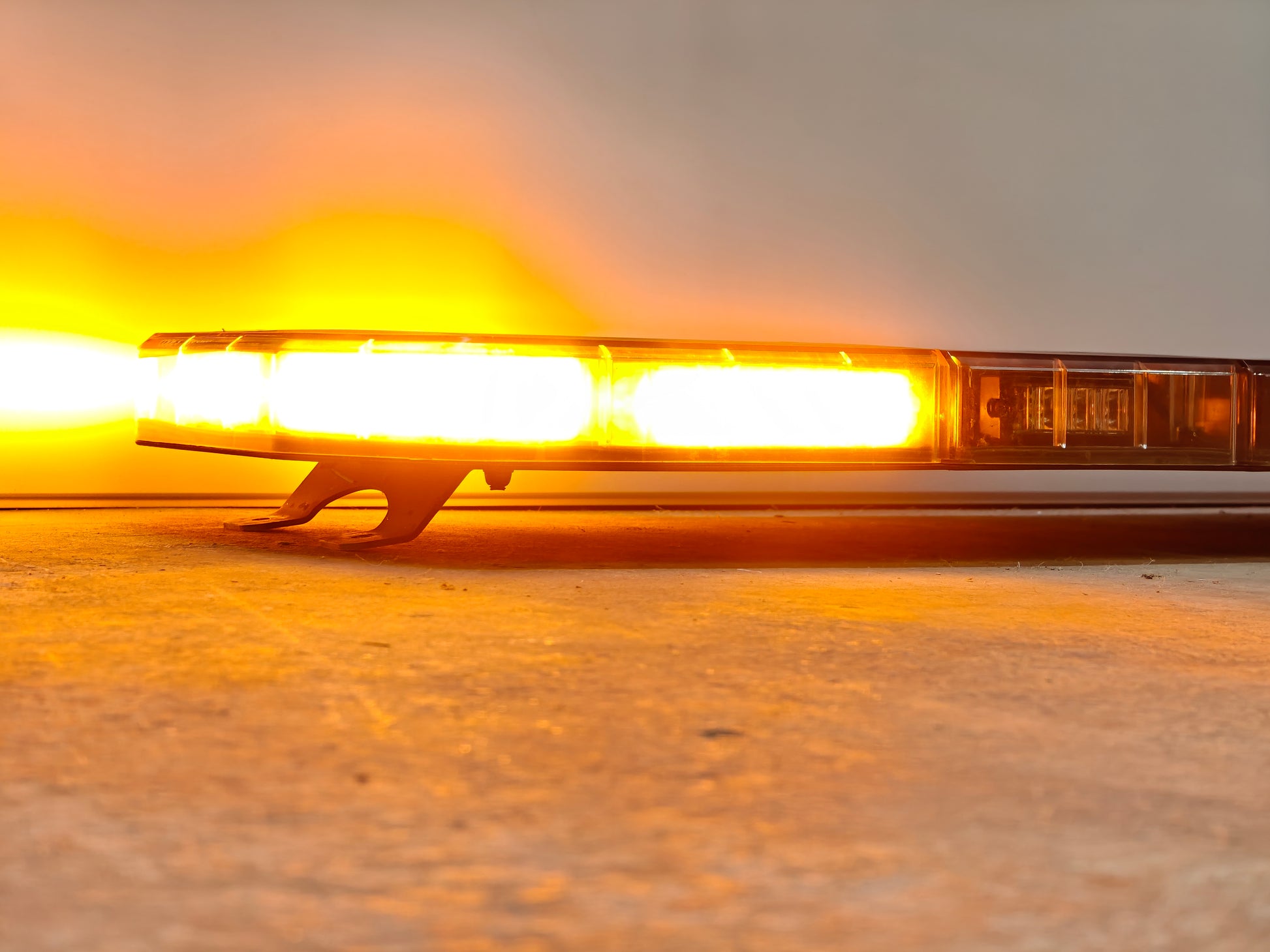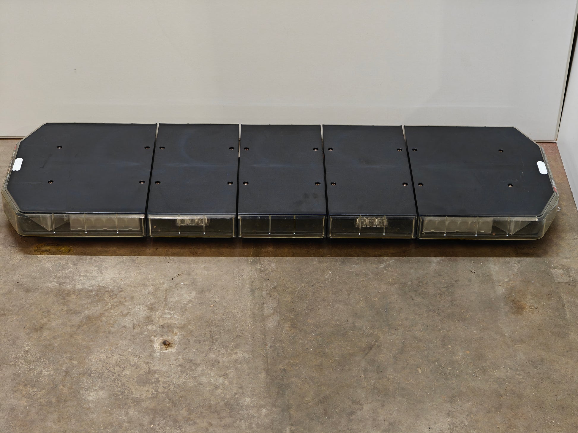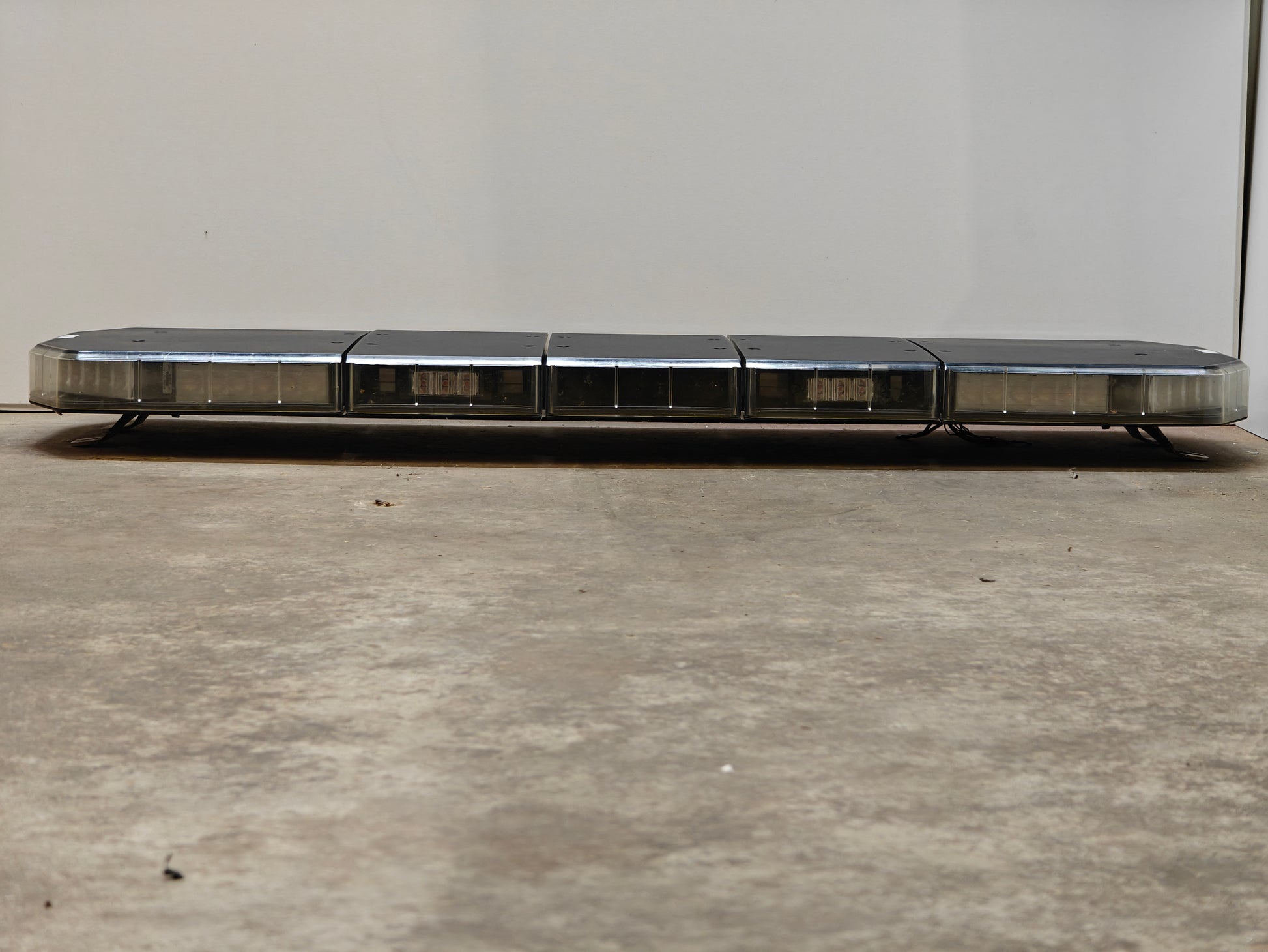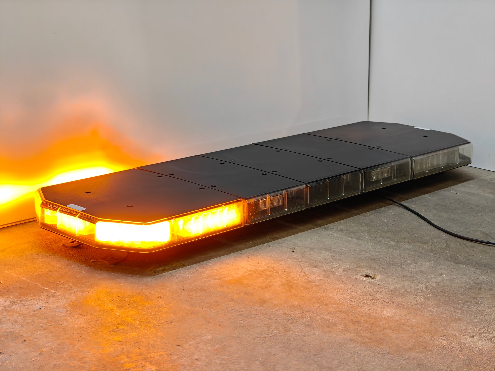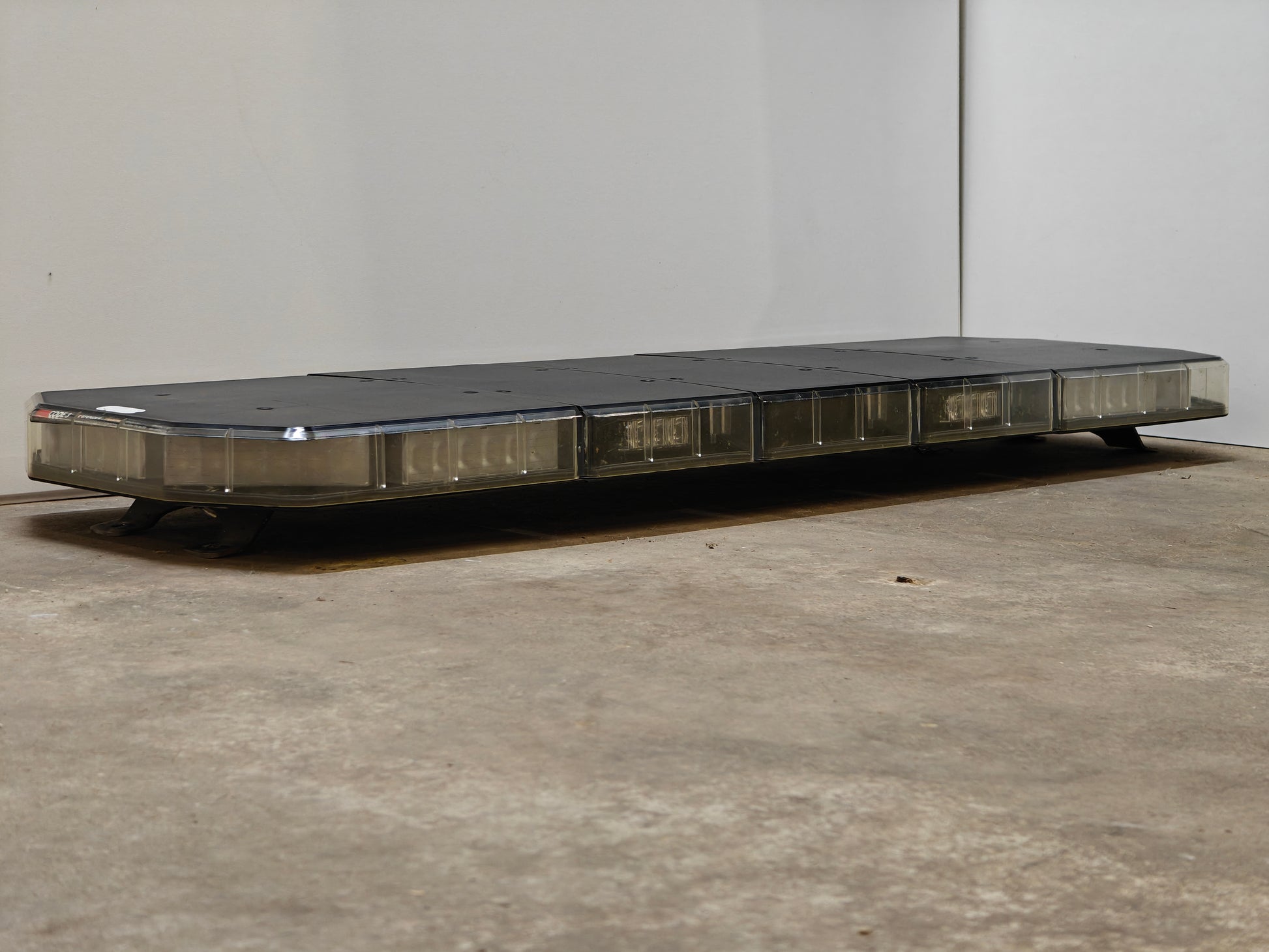 Nette LED flitsbalk van Code 3 voorzien van heldere transparante kappen met zwarte bovenzijde. Door vermindering van lichtinval zorgt dit voor een extra felle lichtopbrengst.
