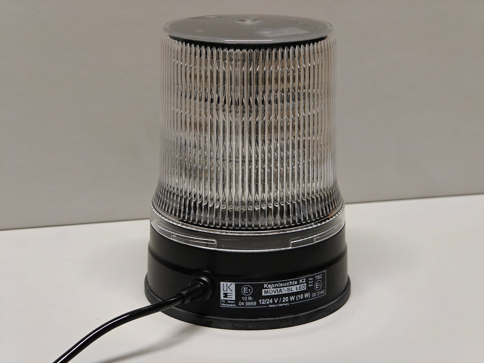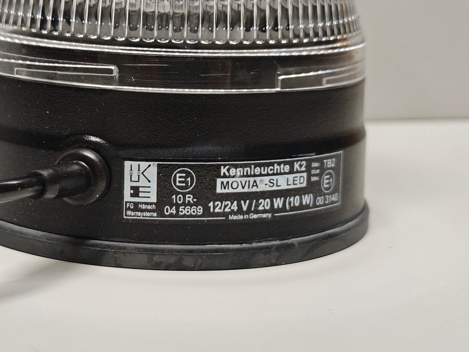 De Hansch Movia SL in blauw, Deze solide flitslamp van het Duitse merk Hansch is voor professioneel gebruik en heeft een strakke robuuste vormgeving en een zeer hoge lichtopbrengst. Voorzien van 3 stevige magneten die getest en goedgekeurd is tot 270 km/h. Voorzien van een universele stekker D (DIN ISO4165). Voorzien van een stevige aluminium basis en slagvaste polycarbonaat lens. De lamp is tevens voorzien van een ECE R65 klasse 2 certificaat. De lamp is inmiddels standaard bij de overheidsdiensten in Nederland.