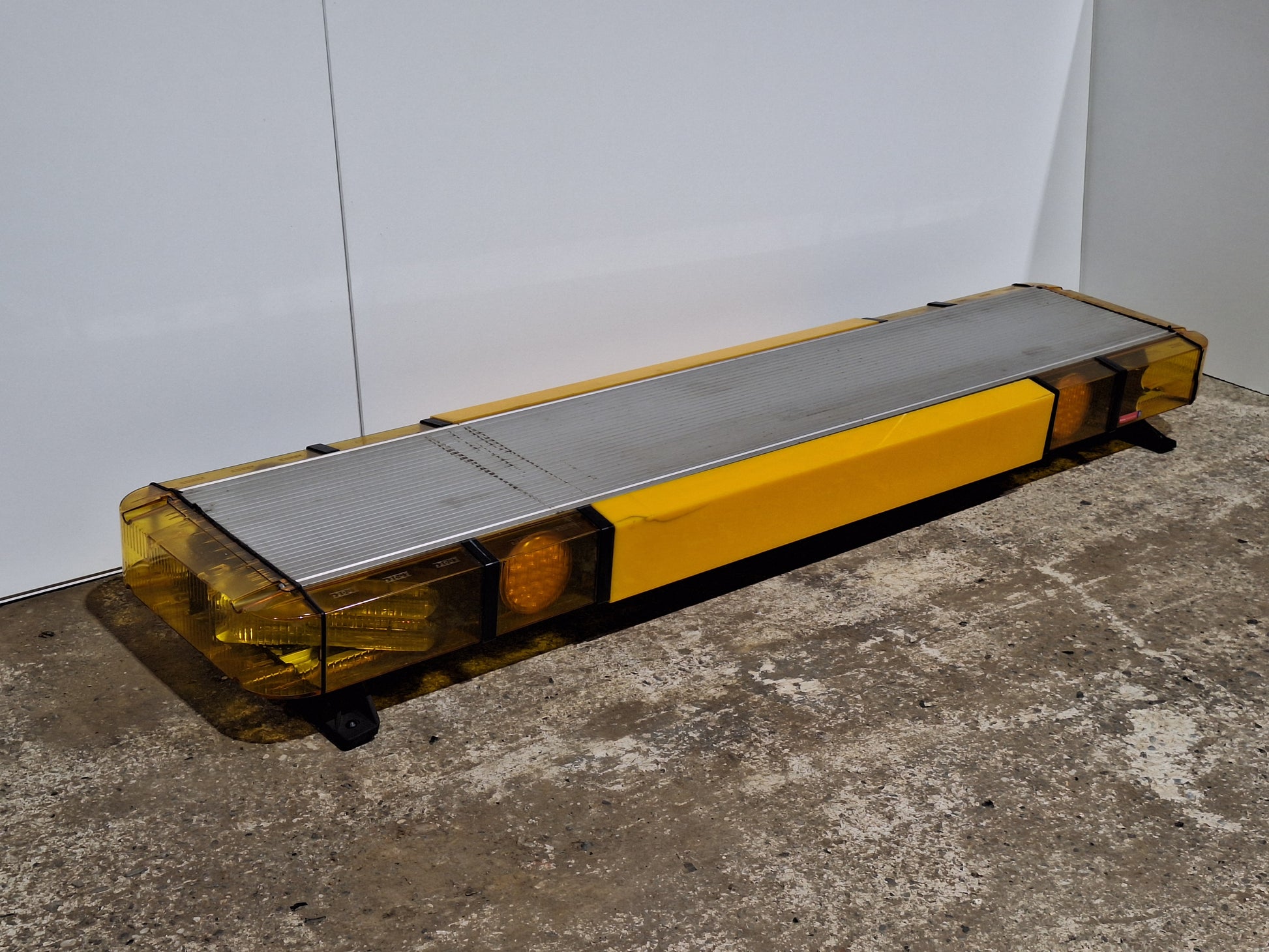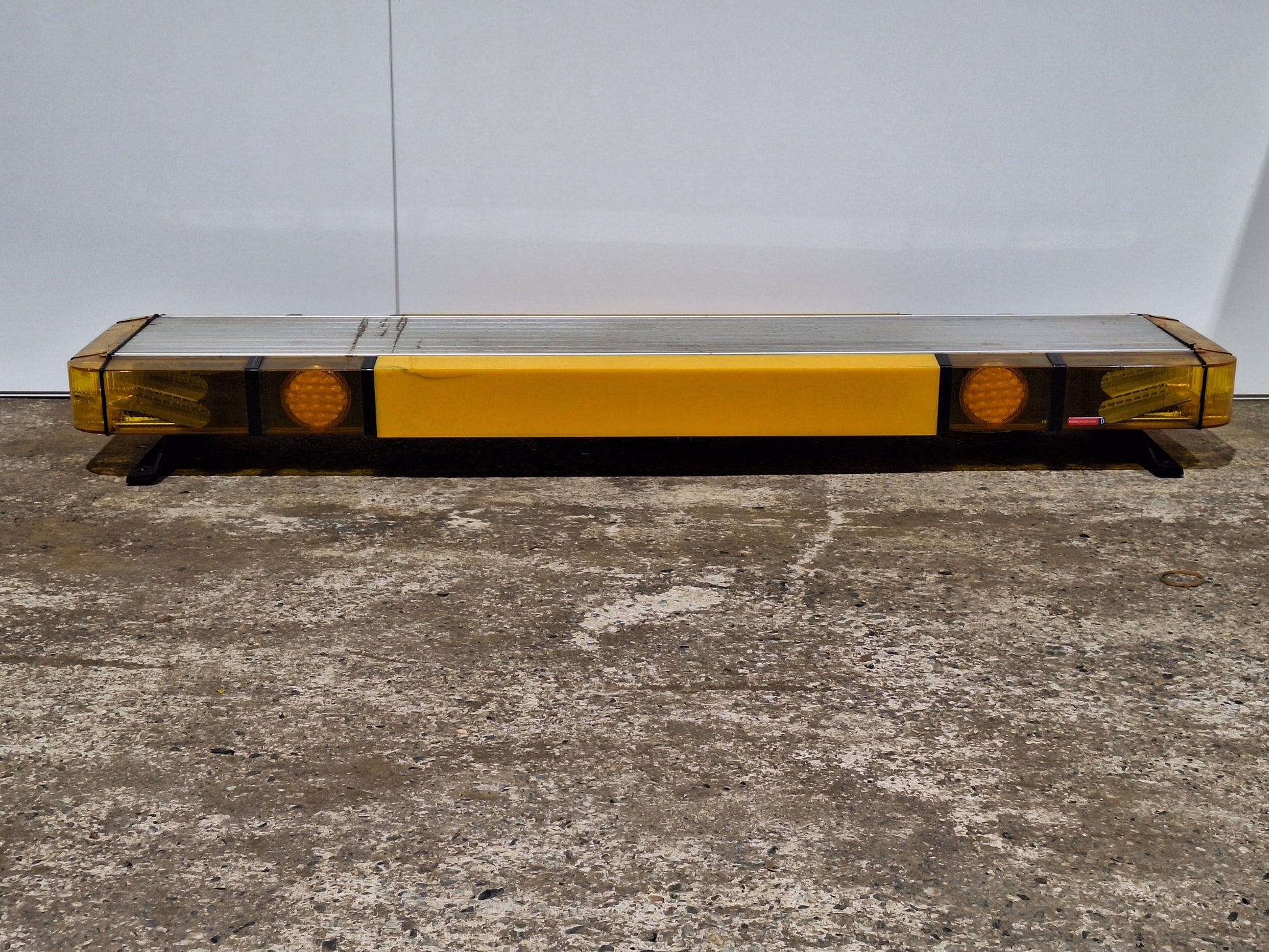 Nette Whelen Freedom led flitsbalk met amber lenzen, ex ANWB wegenwacht. Voorzien van dubbellaags amber flitslampen, richtingaanwijzers aan de achterzijde en middendeel verlichting. Hierop kunt u eigen teksten aanbrengen als reclame voor uw bedrijf.