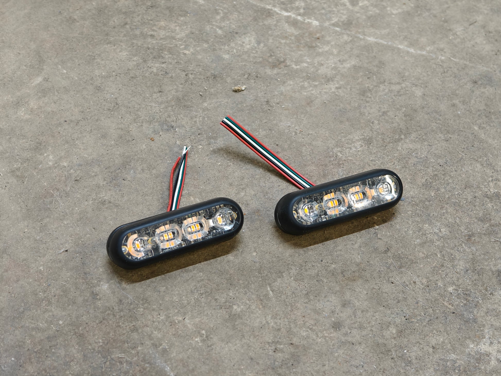 Set Soundoff signal Ghost led flitsers in amber, voorzien van verschillende flitspatronen, synchronisatie en dimstand.